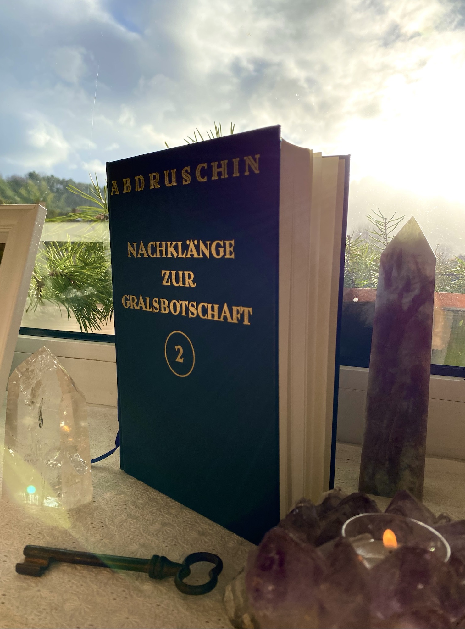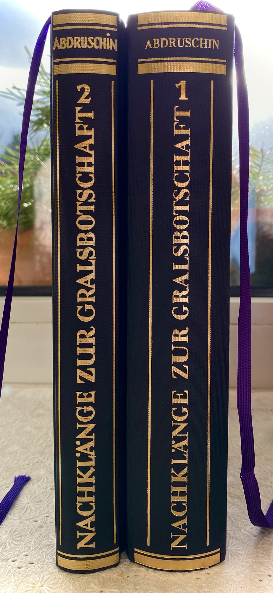 Wir vermitteln die Faksimile-Ausgabe der Gralsbotschaft sowie die Nachklänge I und II in schwarzem Leder gebunden mit violettem Leseband.